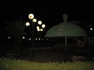 この作品の素晴らしいところは、目玉おやじだけでなく、そばに猫娘の頭やねずみ男の頭に見える壁などが存在しているところです。 舞台が夜なのも、粋ですね。 |